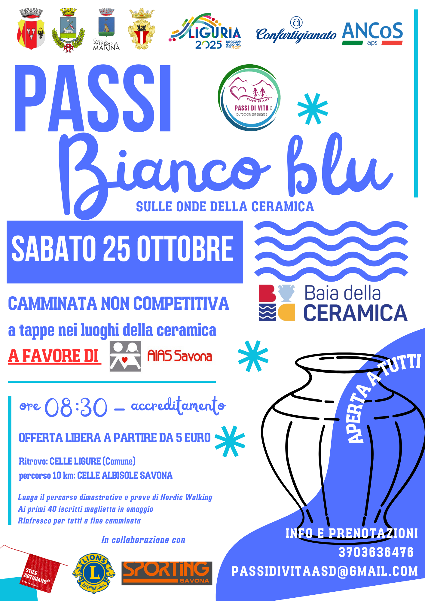 Camminata non competitiva di circa 7 km lungo la costa tra Celle, Albisola e Savona, tra panorami e botteghe di ceramica.